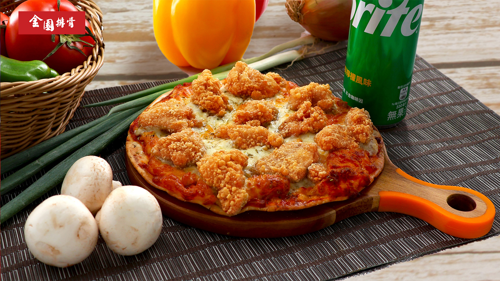 外酥內嫩的鹽酥雞腿肉,擺上薄脆餅皮小披薩,15分鐘馬上烘烤完成~