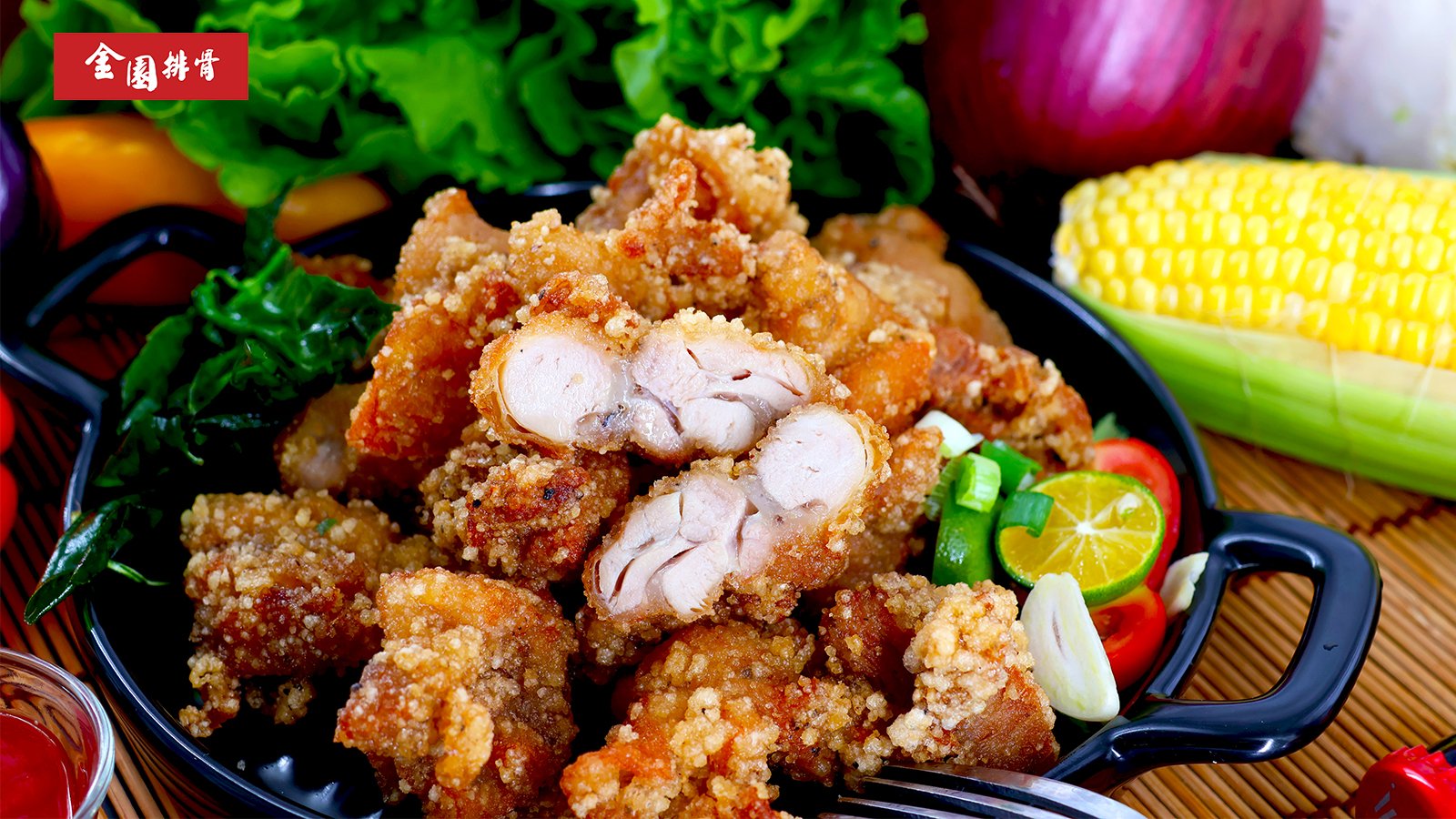去皮去骨後的鹽酥雞腿肉,裹上獨家配方的麵皮,把雞肉所有的美味都包了起來~